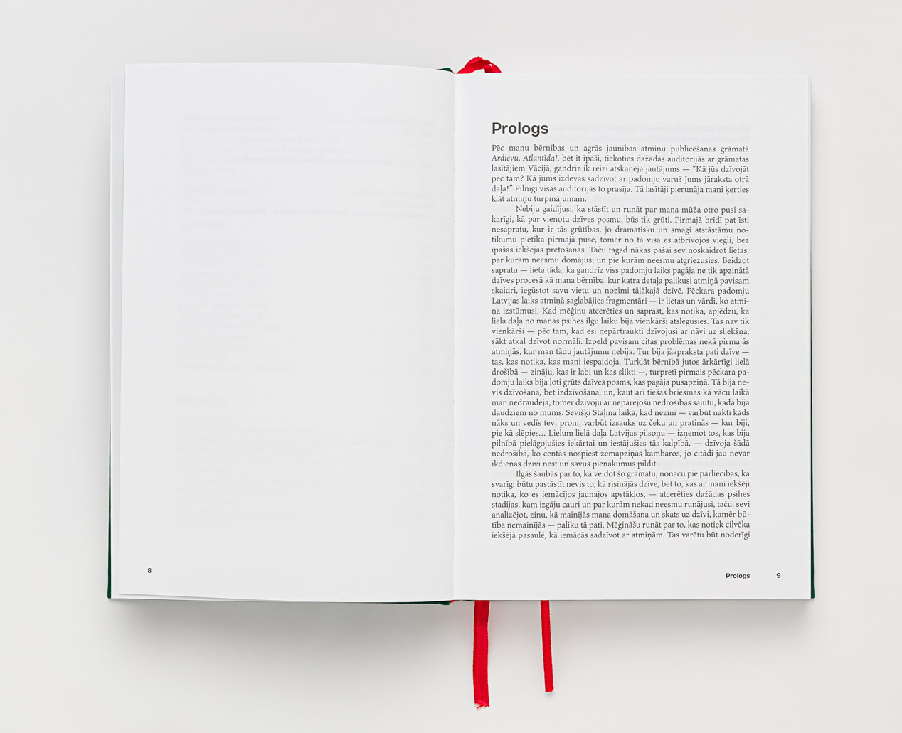 Projektā iesaistījos jau grāmatas tapšanas stadijā, tāpēc varēju piedalīties arī attēlu un dokumentu atlasē. Grāmatā mijas daudzveidīgi vizuālie materiāli līdzās tekstam, tāpēc grāmatas dizainu veidoju dinamisku, attēli reizēm sākas vienā lapā, tad pārlec uz nākamo, nedaudz animējot tos, atsauce uz kinofilmām.