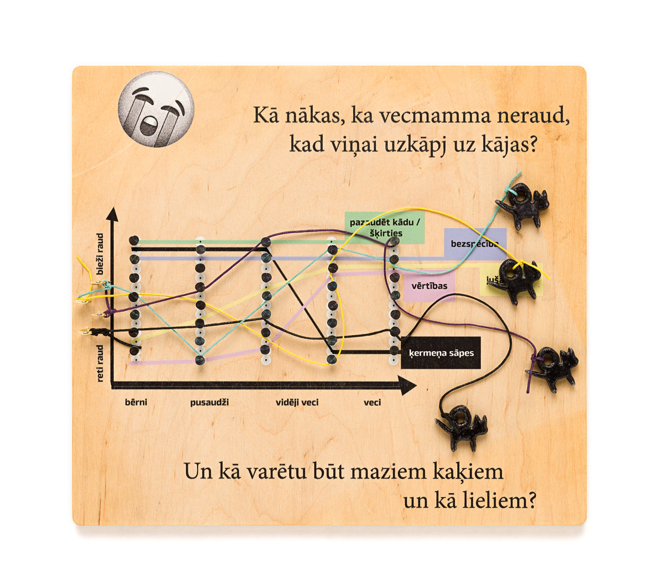 “Vai kaķi raud?” ir ceļojošs muzeja krājums – nodarbība, kas ļauj sākumskolas vecuma bērniem izzināt emocijas cilvēkos un kaķos. Kopīgi pētot un radoši darbojoties skolēni attīsta savas sociāli emocionālās prasmes, radošo un kritisko domāšanu, empātiju.